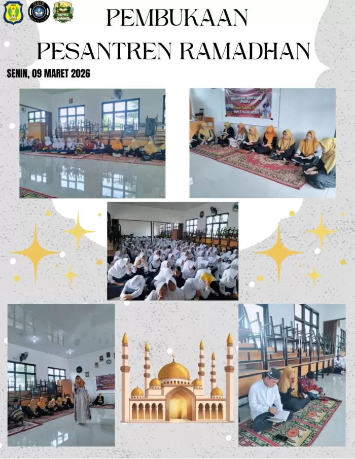 Alhamdulillah, kegiatan Pembukaan Pesantren Kilat Ramadhan di SMPN 6 Talang Kelapa telah resmi dilaksanakan pada hari senin, 9 Maret 2026. Kegiatan ini dibuka langsung oleh Kepala SMPN 6 Talang Kelapa, Dra. Ersusianty. Kegiatan ini diharapkan dapat menjadi momen berharga bagi para peserta didik untuk memperdalam ilmu agama, meningkatkan keimanan, serta menanamkan nilai-nilai akhlak mulia di bulan suci Ramadhan.